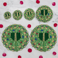 This poshak features heavy sequin (sitara) work, golden zari embroidery, and multicolor thread motifs.